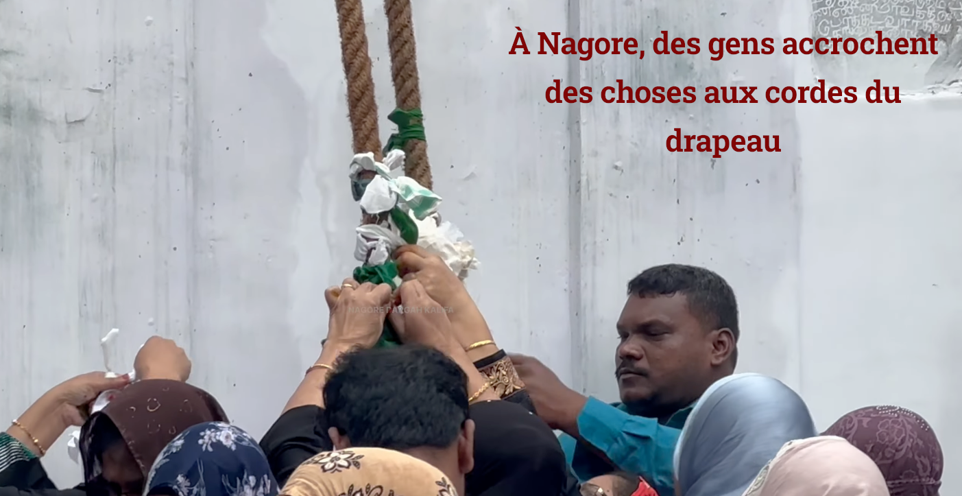 « Le fait de tenir cette corde sacrée s’appelle عِمَادُ الْمُرَادِ : le pilier du but, car les gens qui tiennent cette corde ayant un souhait tout en demandant l’aide de Shaheed Badusha Nayagam, se verront leurs invocations exaucées dans un temps très court durant l’année. »16